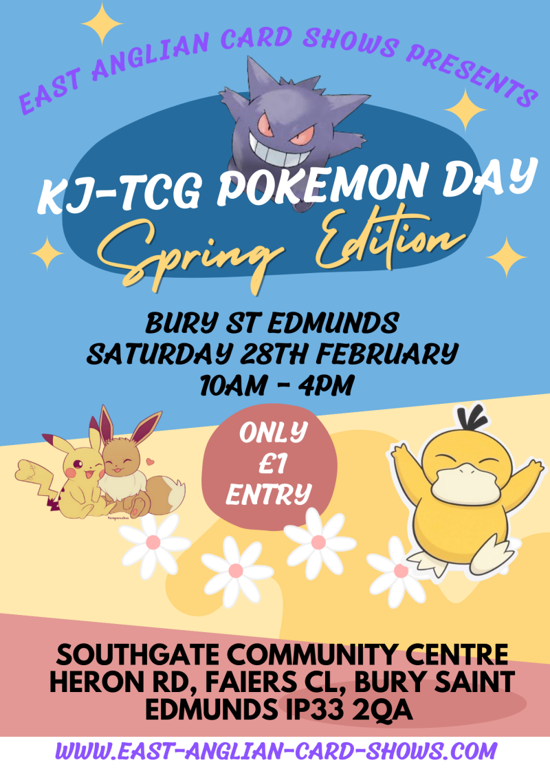 We are super excited to bring Bury St Edmunds Our First Ever Pokemon Day Held at The South Gate Community Centre on 28th February only £1 Entry & under 12s Free.